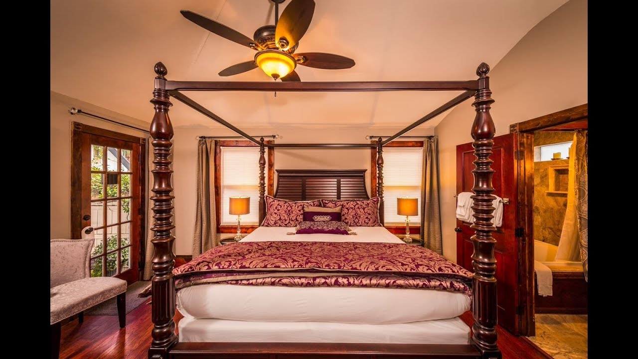 | King canopy bed | 1st floor with a private courtyard entrance | Air-jet tub for 2 | Travertine rainhead shower with body sprays | Electric fireplace | Individually controlled HVAC |